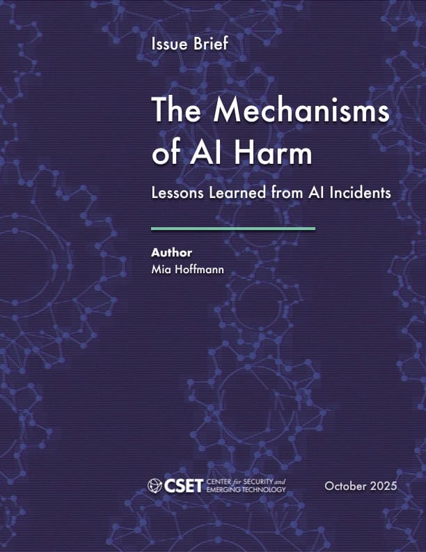 What it is: An October 2025 CSET issue brief by Mia Hoffmann that analyzes real-world AI incidents from the AI Incident Database to map how AI harm happens in practice.