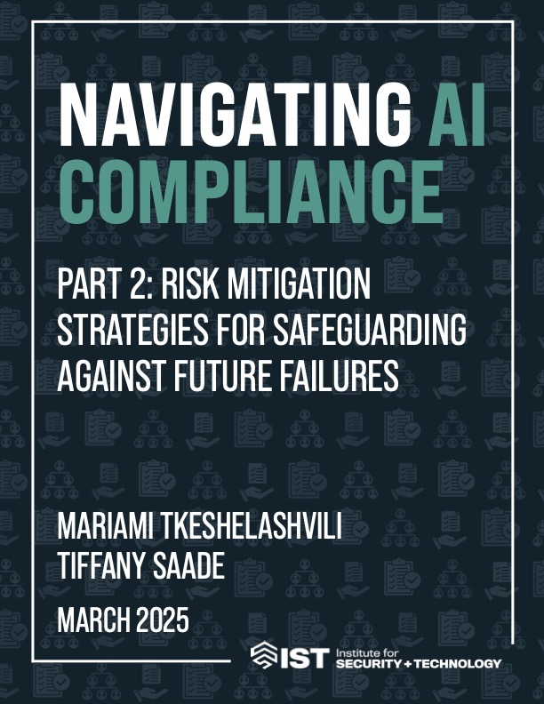 Tkeshelashvili, Mariami and Saade, Tiffany. Navigating AI Compliance, Part 2: Risk Mitigation Strategies for Safeguarding Against Future Failures. Institute for Security and Technology, March 2025.